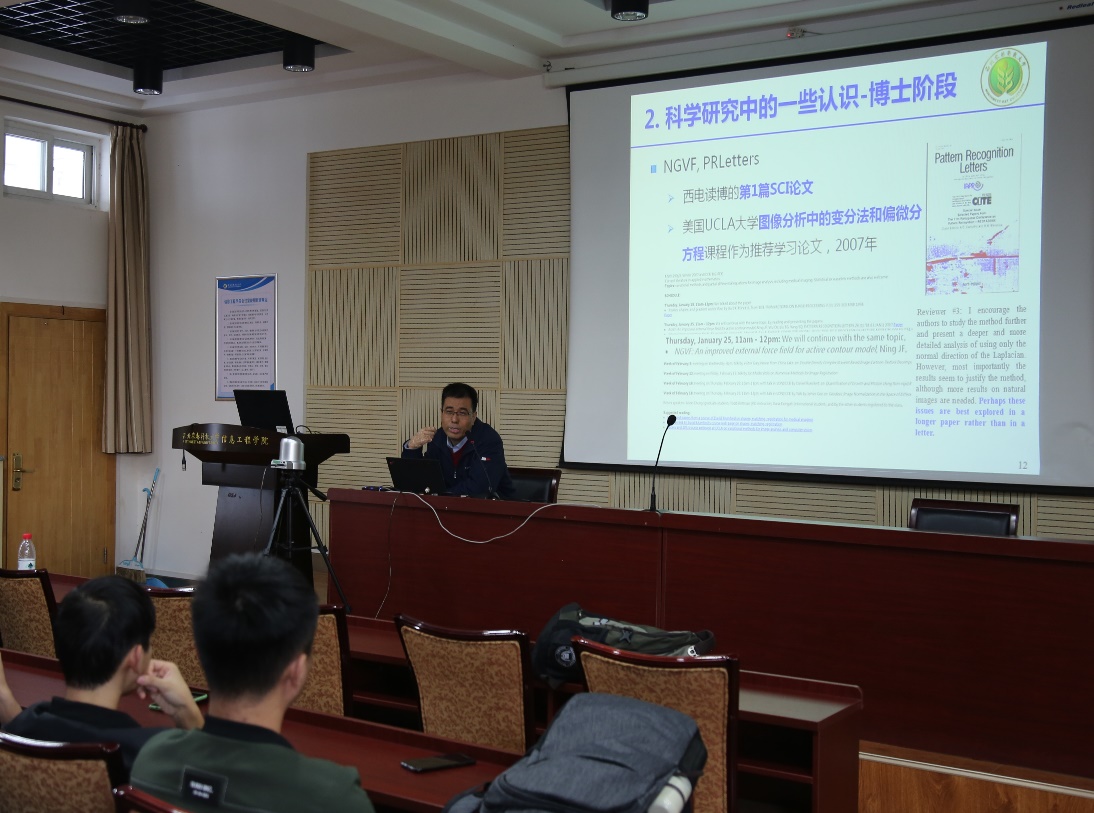 10月23日下午,我院宁纪锋教授为学院全体硕士生作了"信息领域中科学研究与学术规范的一点认识和体会"为主题的报告。