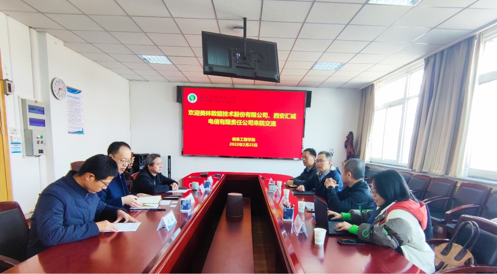2月22日,美林数据技术股份有限公司副总裁张鹏飞、西安汇诚电信有限责任公司副总经理李勇一行4人来院交流。学院院长张宏鸣、副院长黄铝文、数据科学与工程系主任刘斌参加座谈。