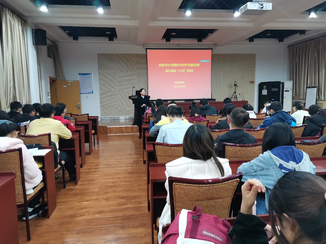 为解答首届数据科学与大数据技术专业学生在专业学习上的困难与问题,10月23日下午,信息学院数科专业答疑会暨学风大讨论主题政治理论学习于学院楼副204会议室举行,院党委副书记刘桂玲老师、2020级本科生辅导员白云鹏老师数科2002班班主任王琼老师、数科2003班班主任杨丽丽老师及数科专业三个班级全体学生参加会议。此外,数据科学与大数据技术系主任、数科2001班主任刘斌老师在线上参加本次会议。