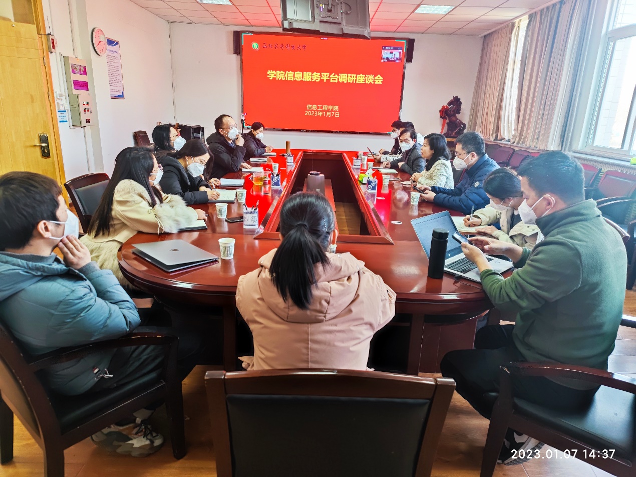 王晓娟对信息学院领导老师的积极配合,用心思考表示了感谢。她表示,学校高度重视学院信息服务平台建设工作,一定会从服务学院、服务师生角度,做好统筹协调,推进好、落实好此项工作,也希望信息学院能继续给予大力支持,信息化处技术人员做好意见建议梳理,尽快落实到平台建设中。