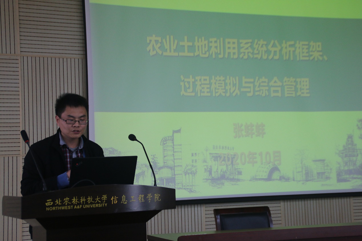 张蚌蚌副教授从系统要素输入、黑箱过程(关系)、系统输出和系统环境四个方面介绍了农用土地利用系统。张老师的团队将计算机技术与控制变量的思想结合,通过模拟复杂的农田生态系统从而实现过程模拟,打破了农田试验在现实环境中无法重复进行的困境。