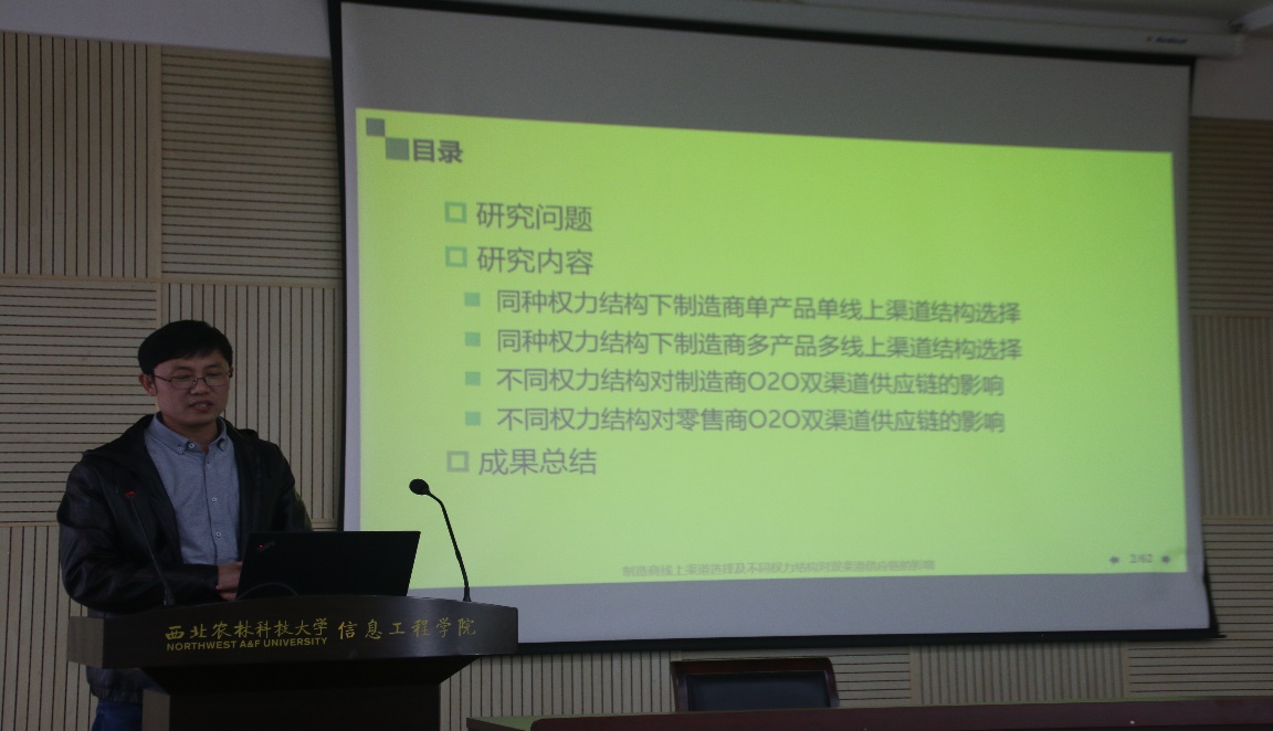 报告主题分别为《数智农业运营管理研究-以生鲜农产品为例》、《农业土地利用系统分析框架、过程模拟与综合管理》、《电子商务背景下的农产品仓储运营管理》和《制造商线上渠道选择及不同权力结构对双渠道供应链的影响》。
