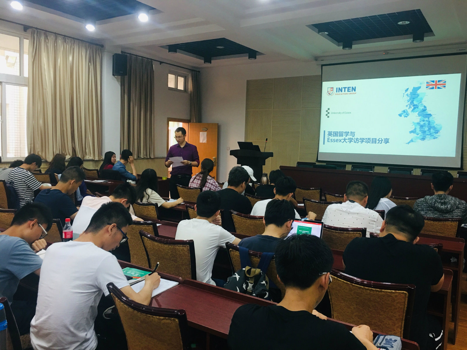 为大力推进国际化人才培养,满足学生多样化与个性化的出国交流访学需求, 2019年6月5日晚,我院特邀INTEN 教育集团一行在学院副203开展分享交流会,为本科生详细介绍Essex大学访学项目,交流会由学院胡少军副院长主持