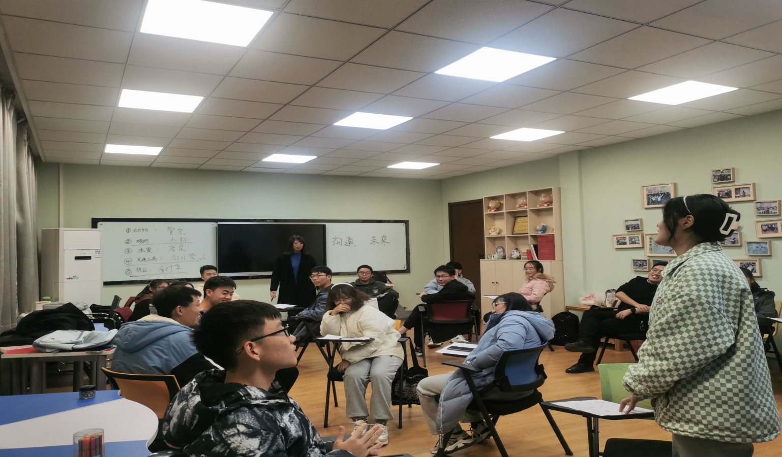 学校心理发展与教育中心符丹老师从“系统:解决障碍”“破冰:认识团队”“沟通:突破假设”“认知:聚焦优势”四个阶段组织团队开展活动。从“心有千千结”活动中,让每位同学增进感情,在游戏过程中消除心理屏障。在团队出现问题时,积极寻找问题根源和解决方法,不断尝试直至取得成功;从“介绍我的名字由来”活动中,让团队彼此加深印象,通过姓名涵义传递个人积极正能量;从“你来猜猜看”互动中,启发同学们应突破假设,适当否定是为了更好地超越,提醒同学们在沟通中应注意觉察,适时调整,积极改变;在“最佳的我”活动中,每位同学分享了最满意的一件事,结合宾夕法尼亚大学塞里格曼教授的个人优势测评结果,通过优势图分析,让同学认识自己,聚焦优势,成为更好的自己。活动中,同学们互动频繁,愉悦交流,在符丹老师的引导下重塑心理健康的意义,是一场有意义、有收获的心理团辅。