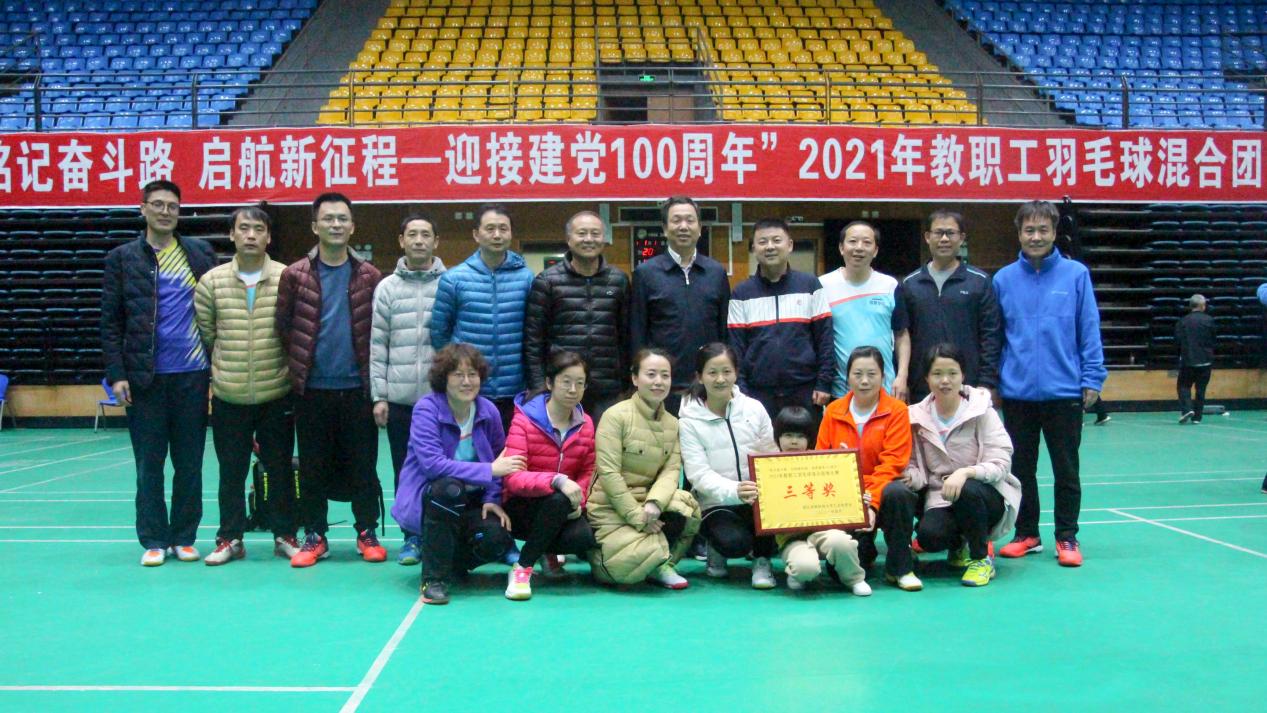 为丰富我校广大教职工的业余生活,活跃校园文化气氛,增强教职工的身体素质,倡导团队精神和凝聚力,4月11日,由学校工会主办的“铭记奋斗路,启航新征程—迎接建党100周年”2021年教职工羽毛球混合团体比赛落下帷幕,学院羽毛球队荣获团体第四名,创历史最佳战绩。