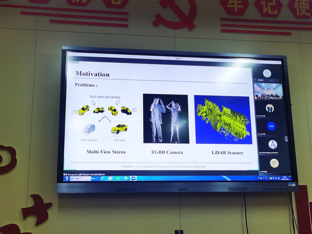 11月26日下午,澳洲迪肯大学助理教授鲁学权博士以“可视数据计算研究” 为题作线上学术报告,围绕三维几何数据和二维图像数据处理问题,介绍课题组相关工作,学院相关师生参会。