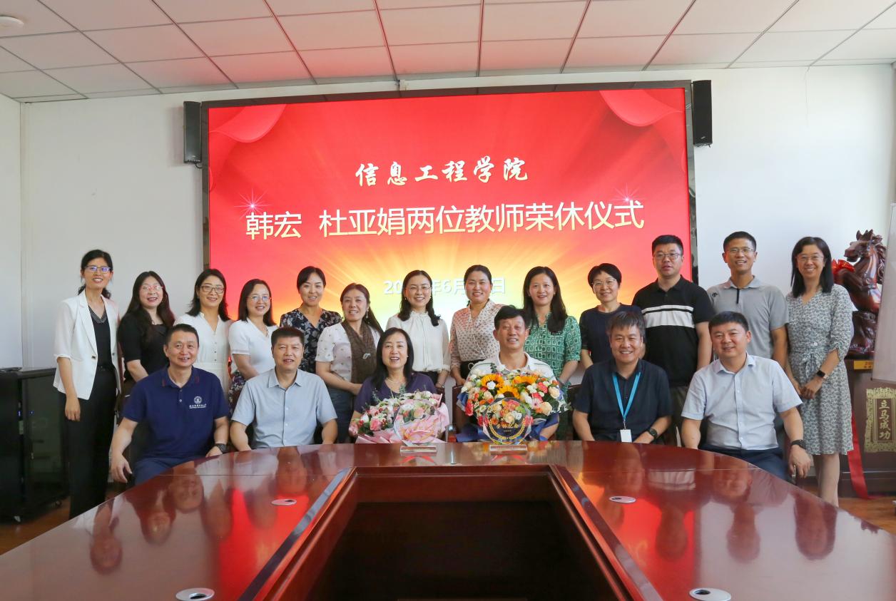 6月11日,学院为韩宏和杜亚娟两位教师隆重举办荣休仪式,党委书记党青和院长张宏鸣为荣休教师献花,并赠送纪念品。学院领导班子成员及各系(部)教师代表参加了活动,副院长崔卫芳主持会议。