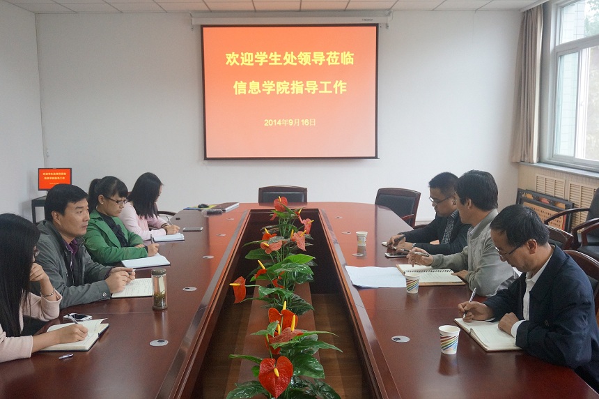 9月16日下午,学生处处长王文博一行3人来学院进行工作调研,询问学生工作中存在的问题与困难,征求相关意见。学院党委副书记何卫军及相关学工人员参加了座谈会。