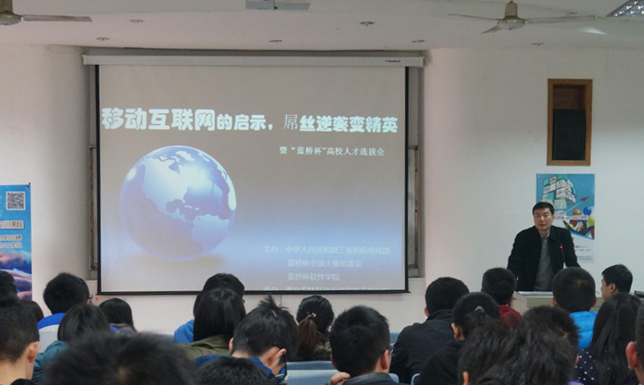 3月13日下午,蓝桥杯大赛组委会、蓝桥杯软件学院的高校联络部主任张磊老师在学院副201教室举办了主题为“就业有未来,蓝桥杯在行动”的专家讲座。我院2012级近200名同学参加了本次讲座,讲座由院党委副书记何卫军老师主持。