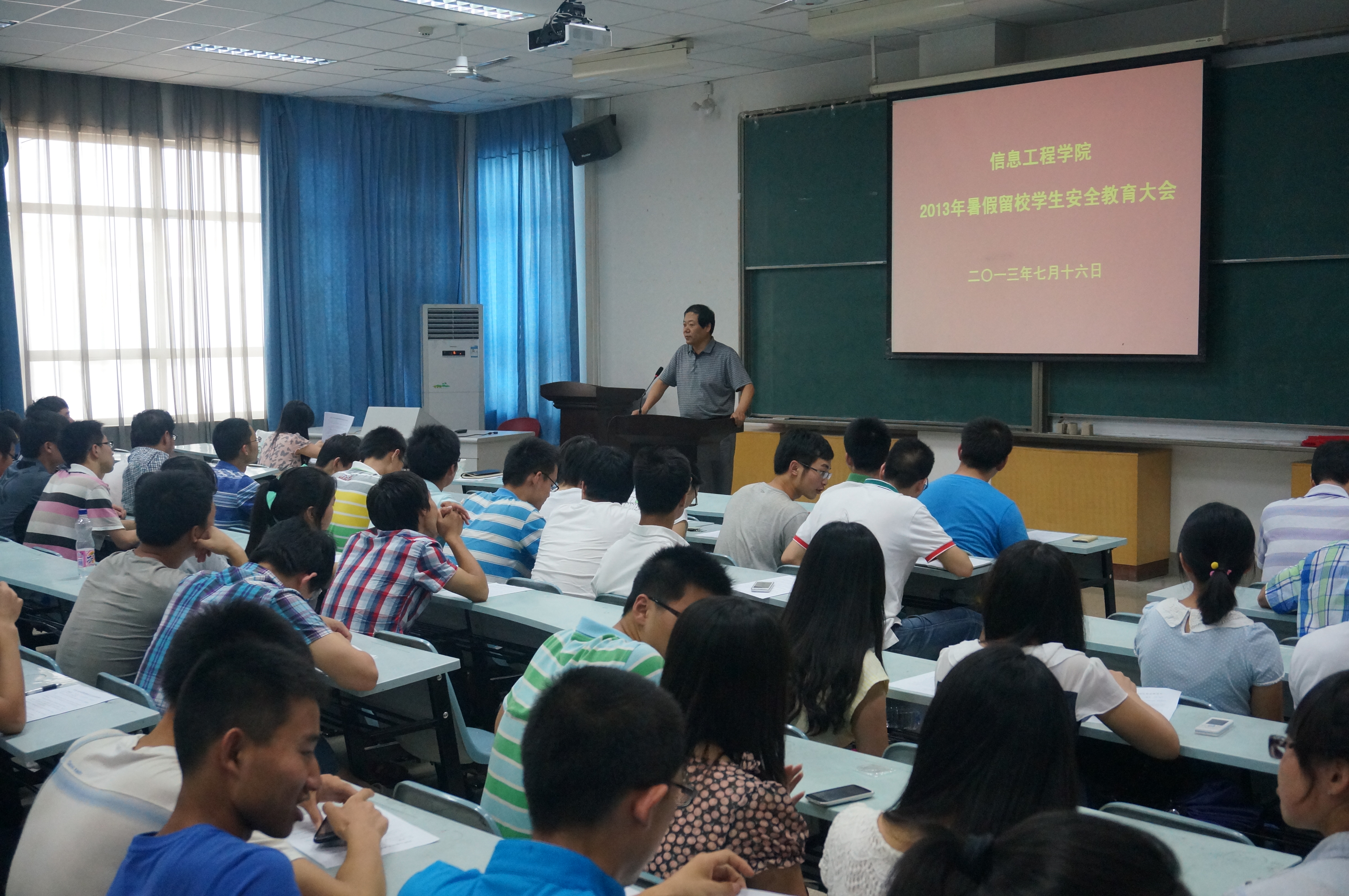 7月16日,信息工程学院在学院M2教室召开暑期留校学生安全教育大会。院党委书记宋西德、院党委副书记何卫军、相关辅导员及全体留校学生参加了此次会议。