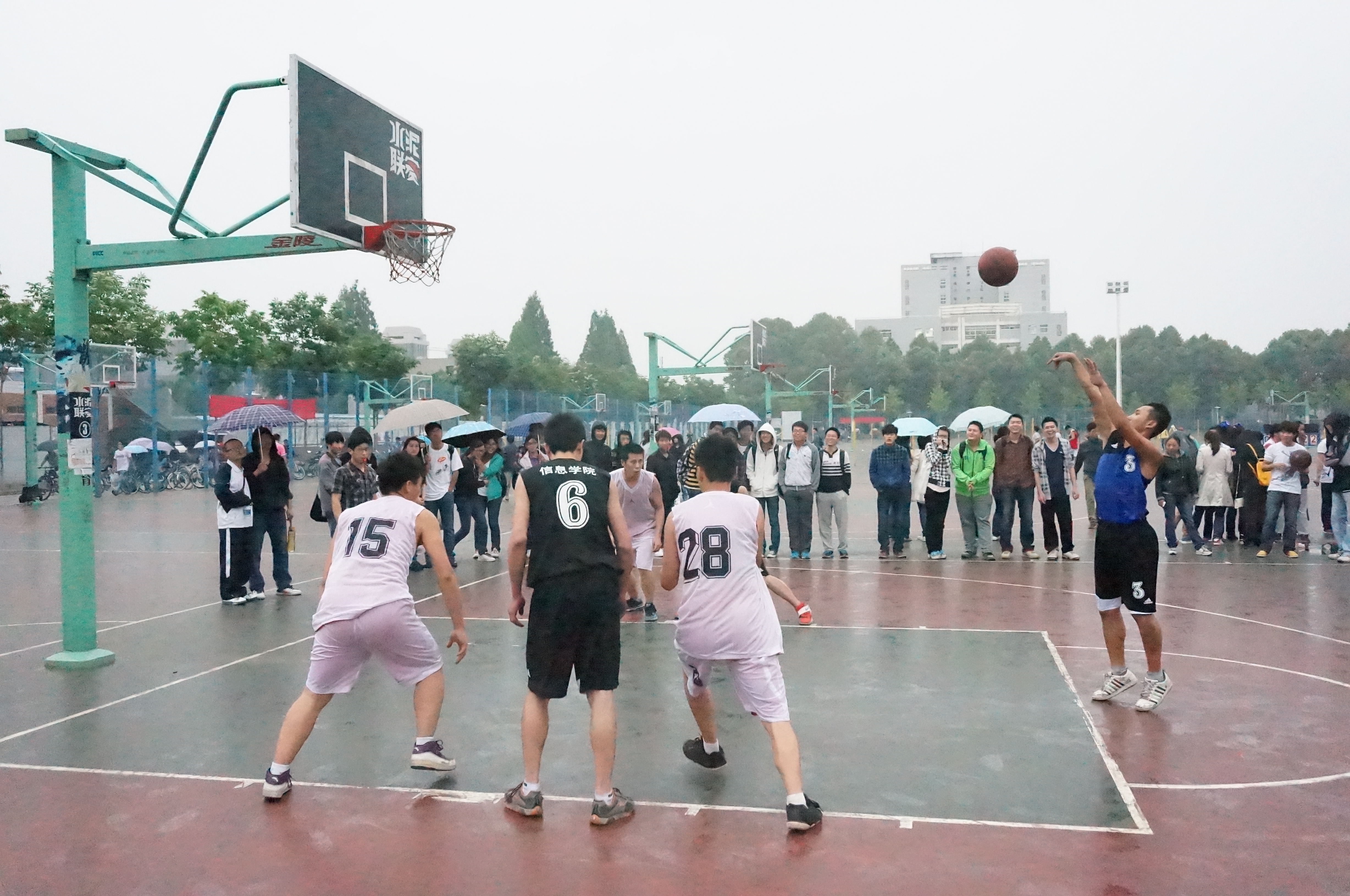 今天下午我院男子篮球队与葡酒学院男子篮球队的精彩比赛为本次篮球赛拉开了序幕。比赛一开始,葡酒学院便占据主动,首先连续命中两记中投,我院队员随后又连突带投,一鼓作气,以27-27结束上、下半场。在加时赛中,我院队员稳扎稳打,打出良好了的战术配合,并合理利用规则,最终我院男篮通过稳定的表现以36-34赢得比赛。比赛过程中,队员们所表现出的拼搏精神和团队精神无不展现出我院学生积极的精神面貌。
