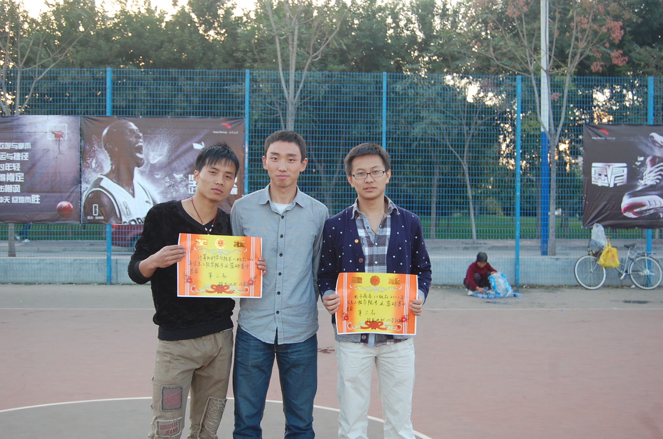 最终排名公布之后,桂老师、倪老师和仵老师分别为此次赛事中获得前四名的队伍颁发了奖状和奖品,并与队员们亲切合影留念。至此,此次新生篮球赛取得圆满成功。