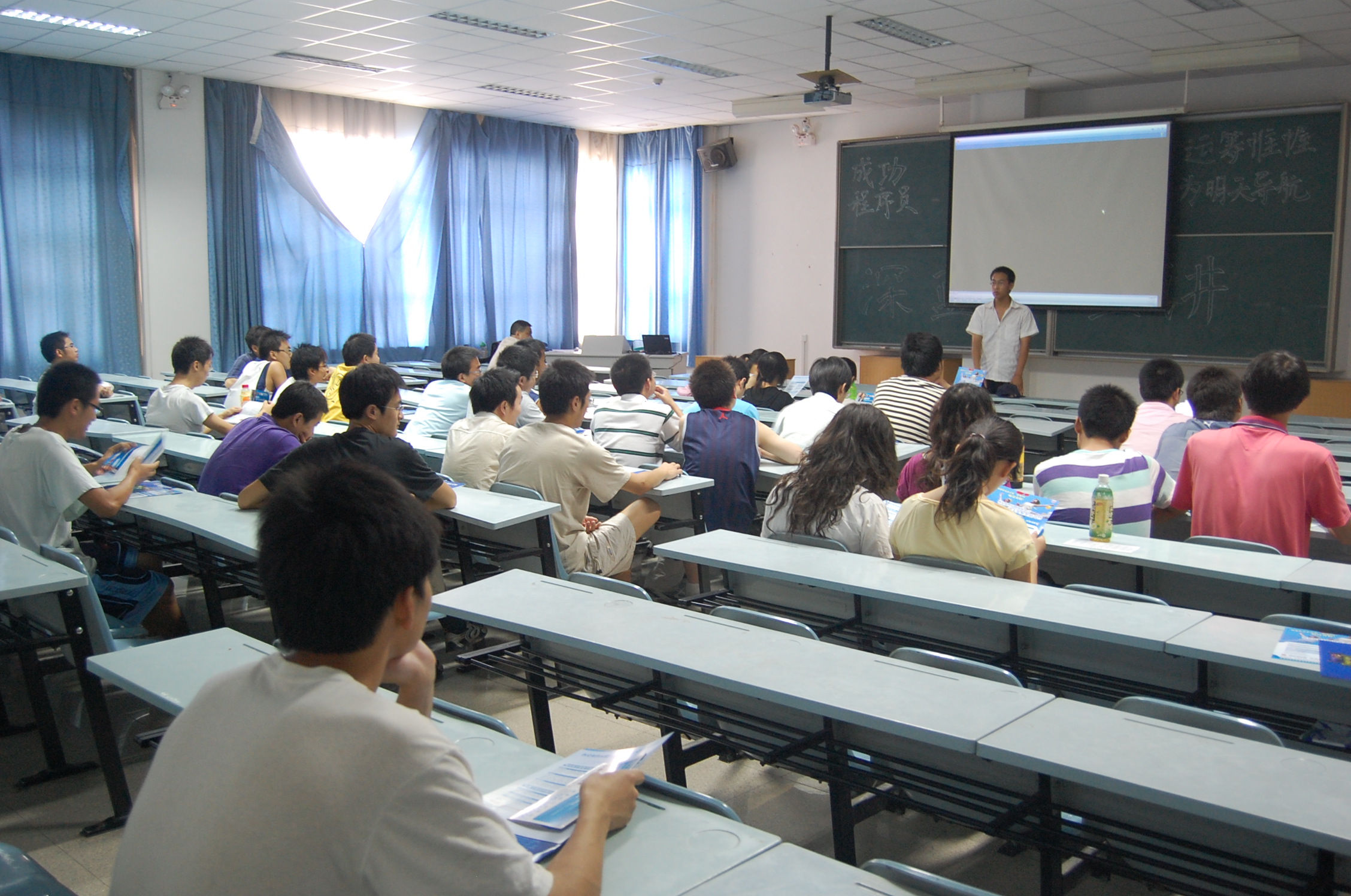 6月24日,西安深蓝软件有限公司技术总监南敏庚先生一行来信息学院招聘暑期实习生。公司在信息学院计算机教学中心多媒体教室进行了宣讲,向2006级同学介绍了深蓝软件公司的规模、发展方向、主要技术以及招聘实习生的要求等,希望同学们积极应聘实习生岗位,到深蓝软件发展。宣讲会结束后,南总监还与同学们进行了求职经验、计算机行业发展等方面的交流,回答了同学们普遍关心的问题。