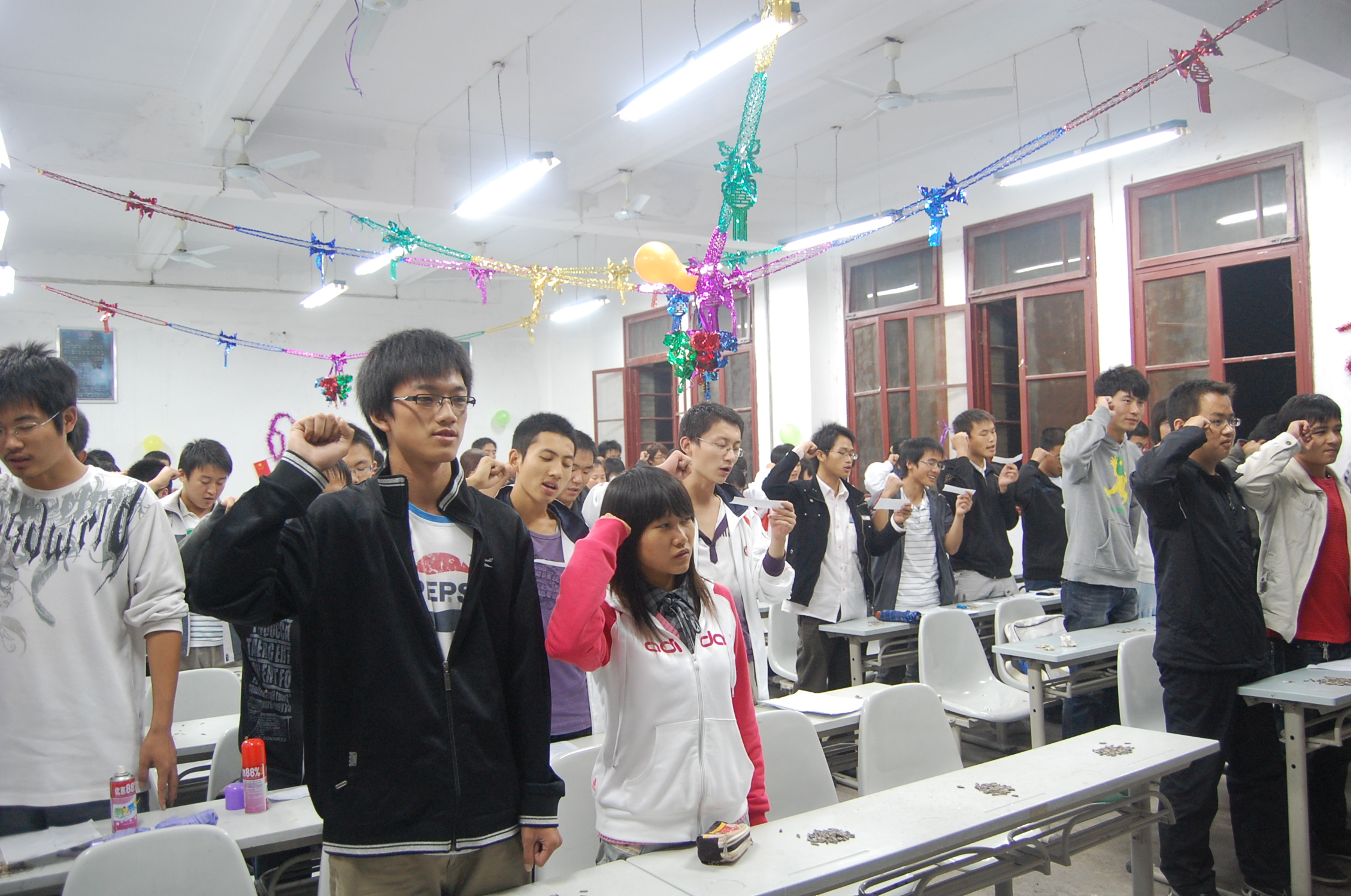 为了庆祝祖国六十华诞,增进同学友谊,10月8日晚信息学院软件工程专业和计算机科学与技术专业分别在N3309和N3206举办“爱国歌曲大家唱”团组织生活。信息学院团工委书记安中立老师和部分学生会干部参加了这次联谊晚会。