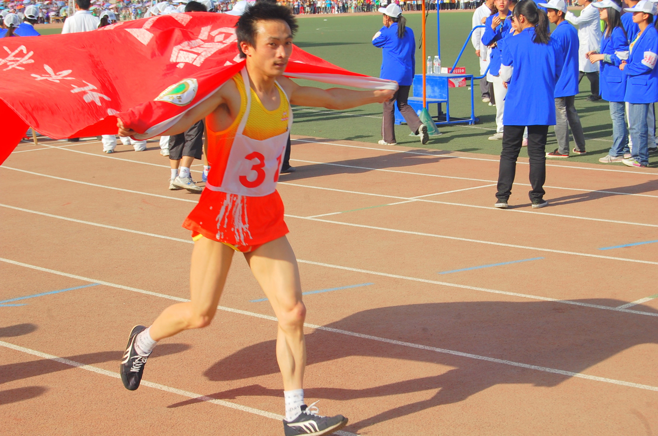 经过三天的奋力拼搏,我院健儿包揽男子400米栏、男子5000米冠亚军,摘得男子10000米桂冠,荣获学生16*60接力第二名,荣获男子200米、男子400米、女子100米栏第三名,荣获男子4*400第四名,女子200米第五名,男子三级跳、女子踏板跳、足球一分钟颠球第六名,获女子1500米、女子4*100接力第七名,获女子800米、男子4*400接力、男子铁饼第八名,以团体总分第七名的成绩再创辉煌。