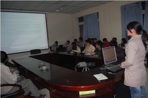 其次,覃香菊同学就雅思考试中的听力和阅读的学习方法和答题技巧作了详细介绍。她主要为同学们讲解了如何选择学习资料,如何选择答题顺序以及阅读和听力中一些常用的技巧。