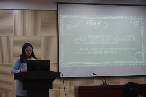 主持人介绍了活动的程序、规则及评分细则后,动漫设计大赛在热烈的掌声中拉开了帷幕。13支来自各个学院各个年级的队伍依次上台进行作品展示和自信答辩。《龙游浅滩》、《骑白马的密林女王》、《陪小红星走过漫长岁月》等优秀作品首次展现在大家面前,给观众带来了一场视觉盛宴。参赛选手们充分发挥想象力,灵活运用鲜明的动漫色彩,振奋人心的音乐,壮观的图片等素材淋漓尽致地表现了他们的爱国热情,展示了他们的设计才华。