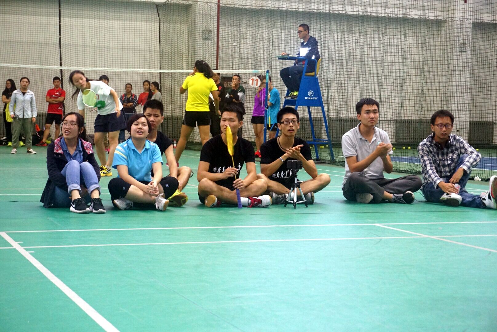 赛前,队员们提前来到现场进行了积极的热身。一对一,二对一,他们跳跃的身姿,青春洋溢的笑脸,不仅体现了他们对羽毛球运动的热爱,还展现了胜券在握的信心。全体队员的合手鼓励、高声加油,更是点燃了整个赛场的激情!