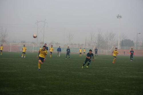 足球场上笼罩着南国罕觏的霾,,吹骤的北风更为环境渲染凄冷。征程愈远,逢敌愈强,但本场比赛对阵劲旅植保,信息学院不卑不亢,以进取姿态演绎一回强者对决。