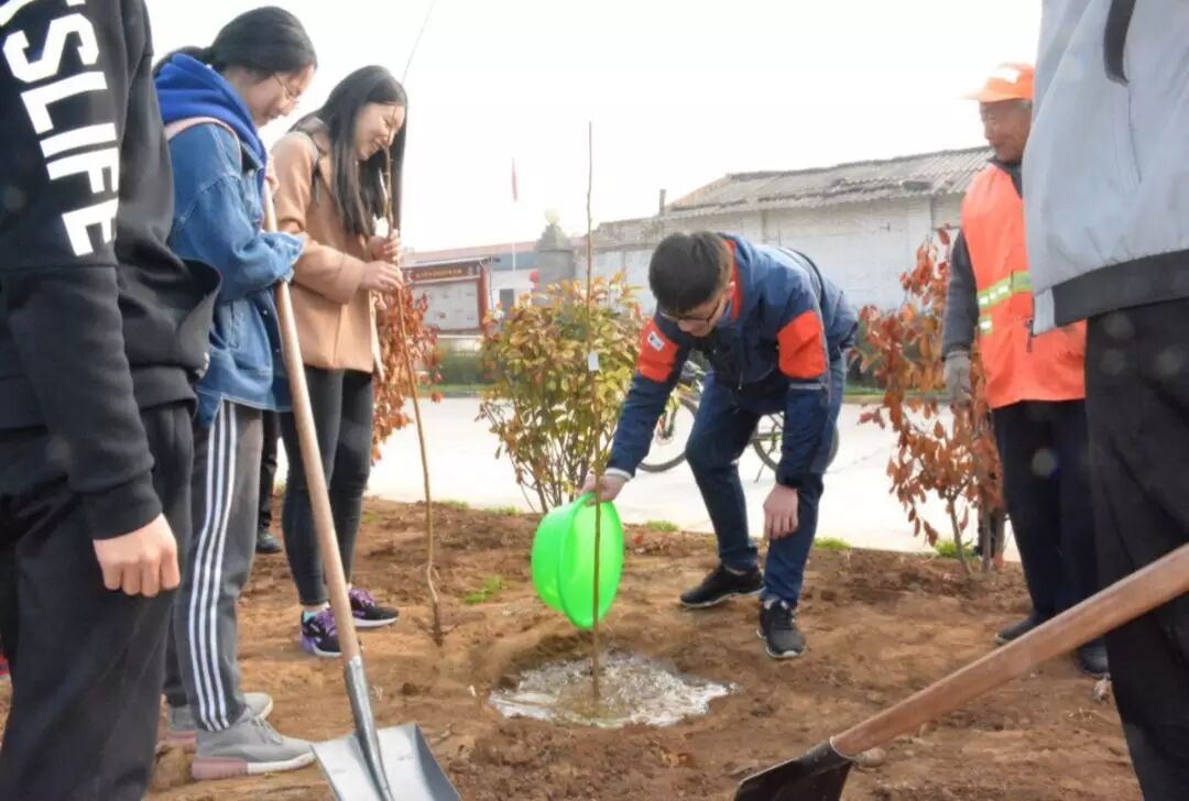 3月11日,信息工程学院社会实践部的志愿者来到了东汉伏波大将军马援故里--毕公村进行志愿植树活动。